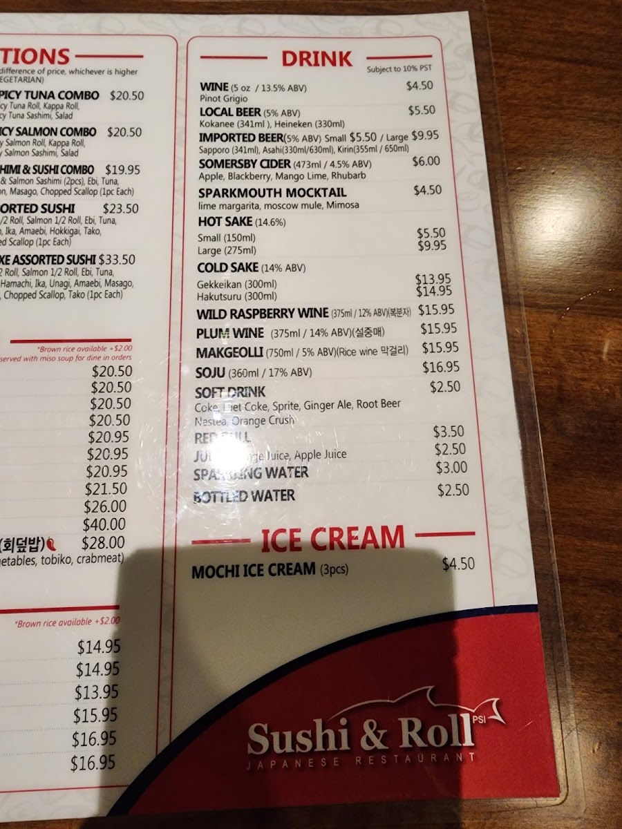 Aside from sushi, the drink options at Sushi & Roll complement your meal beautifully. Whether you prefer a bottle of water or wish to treat yourself to a Lime Margarita Mocktail, you'll find a selection that caters to every preference.