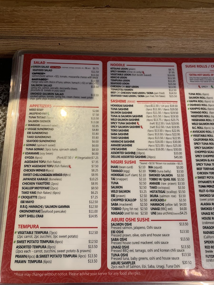 The menu features an enticing selection of Donburi (Rice Bowls), which are perfect for those looking for a hearty meal. Indulge in a refreshing Salmon Don or savor the flavors of the Spicy Tuna Sashimi Don — each bowl is artistically assembled, ensuring that every bite is a delight. For those who appreciate a variety of tastes, the Chirashi Don, boasting an array of assorted sashimi on a bed of rice, is sure to impress.